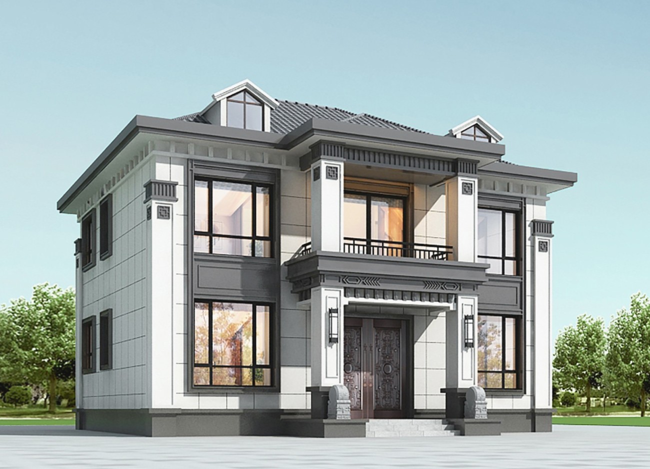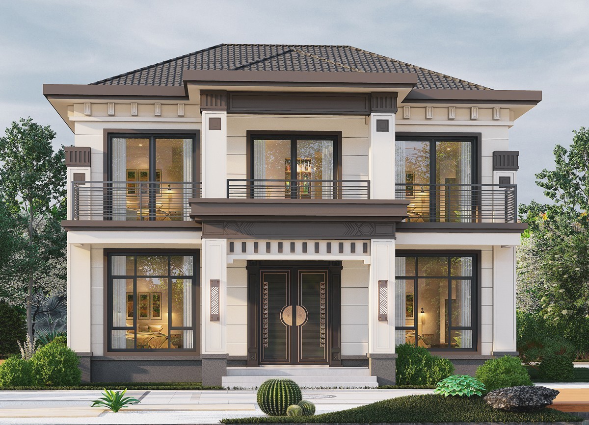 阜新011 两层新中式(15.43x12.66米)-【易设计】